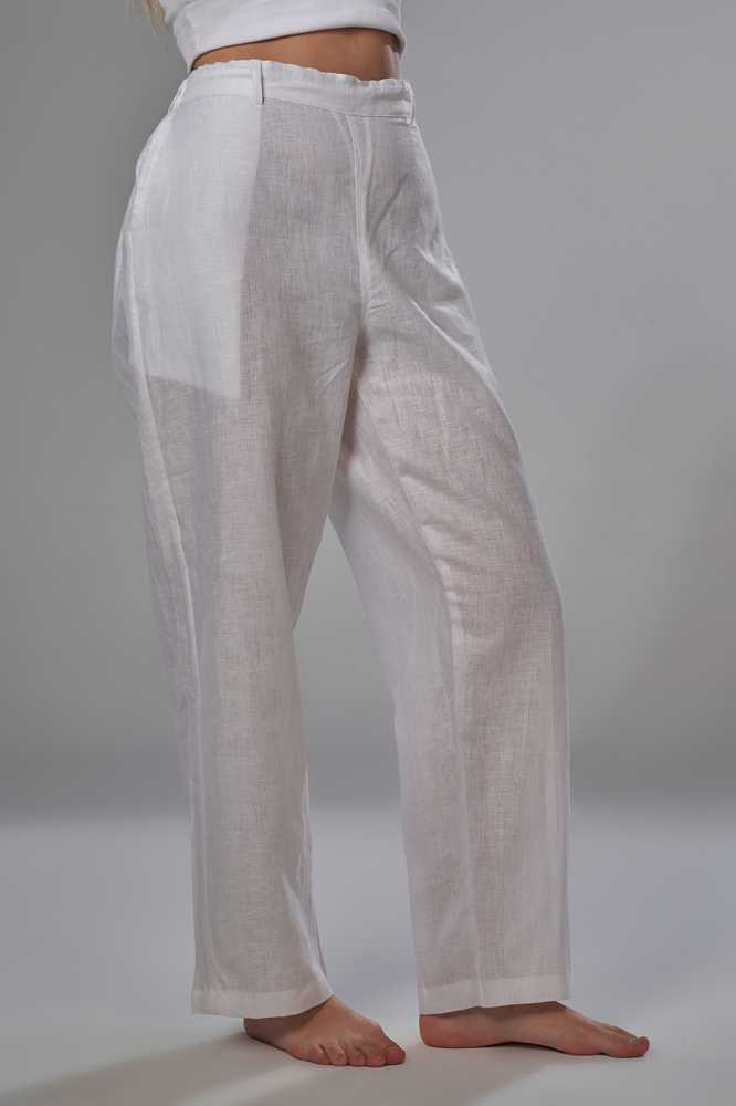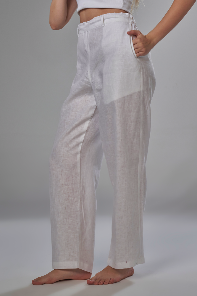 بنطلون مصنوع من ألياف الكتان الطبيعي الذي يساعد على مرور الهواء ويعطي ملمس مريح وبارد ، مناسب للمناسباتوالسفر.