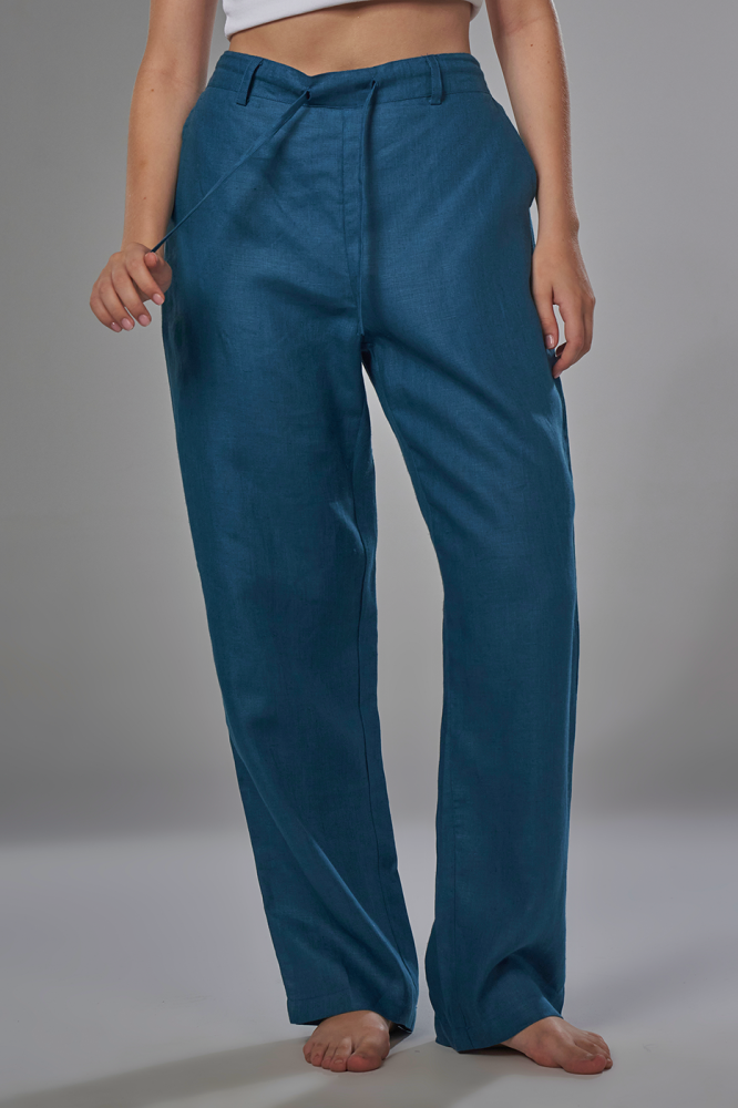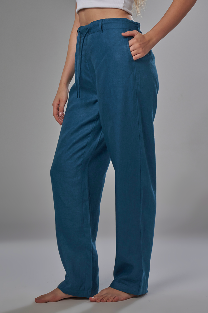 بنطلون مصنوع من ألياف الكتان الطبيعي الذي يساعد على مرور الهواء ويعطي ملمس مريح وفخم ، مناسب للمناسبات والسفر.