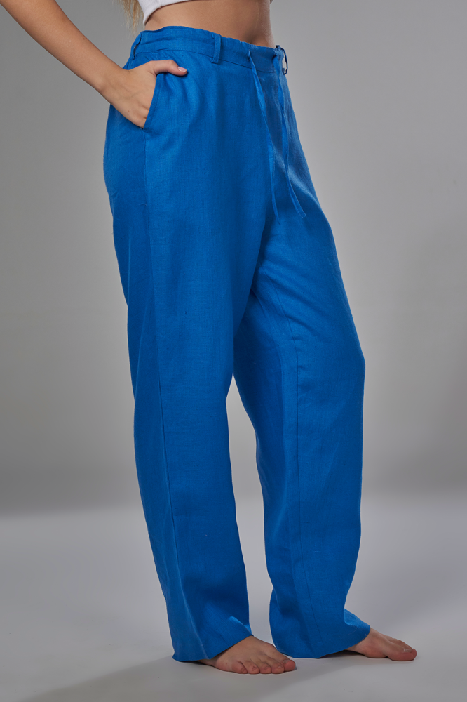 بنطلون مصنوع من ألياف الكتان الطبيعي الذي يساعد على مرور الهواء ويعطي ملمس مريح وبارد ، مناسب للمناسبات والشاطئ والسفر.