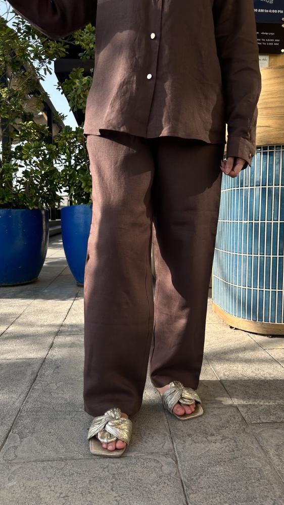 بنطلون مصنوع من ألياف الكتان الطبيعي الذي يساعد على مرور الهواء ويعطي ملمس مريح وفخم ، مناسب للمناسبات والسفر.