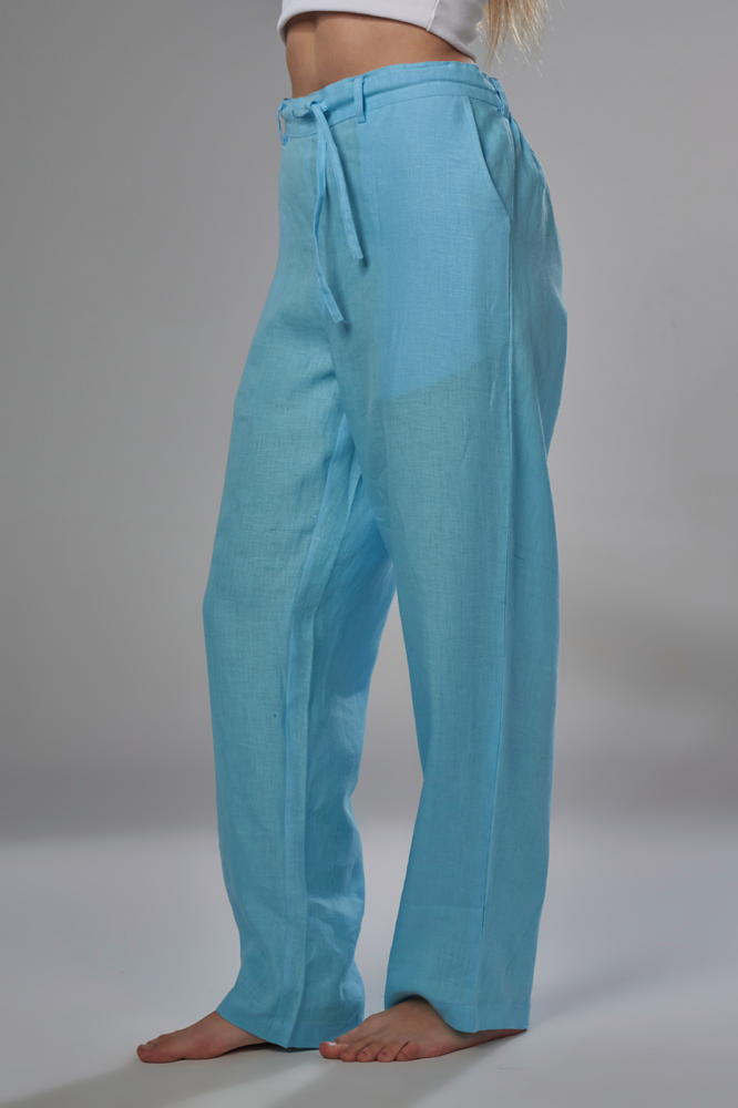 بنطلون مصنوع من ألياف الكتان الطبيعي الذي يساعد على مرور الهواء ويعطي ملمس مريح وبارد ، مناسب للمناسبات والشاطئ والسفر.