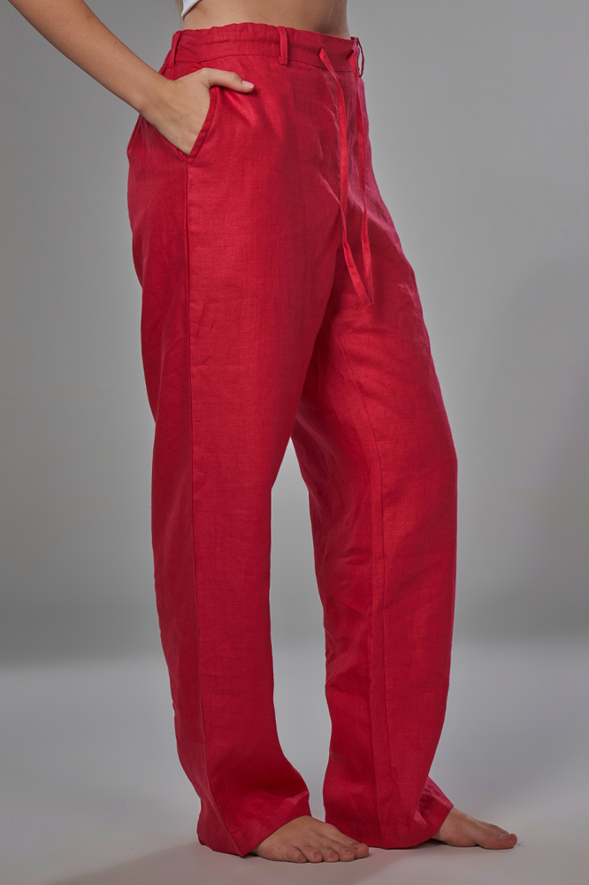 بنطلون مصنوع من ألياف الكتان الطبيعي الذي يساعد على مرور الهواء ويعطي ملمس مريح وبارد ، مناسب للمناسبات والشاطئ والسفر.