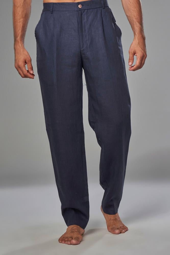 أضف لمسة من الأناقة الراقية إلى إطلالتك مع هذا البنطلون الرسمي المصنوع من كتان 100% طبيعي. يتميز بتفصيل دقيق وقصة كلاسيكية رسمية تضمن لك مظهرًا متوازنًا بين الفخامة والراحة.