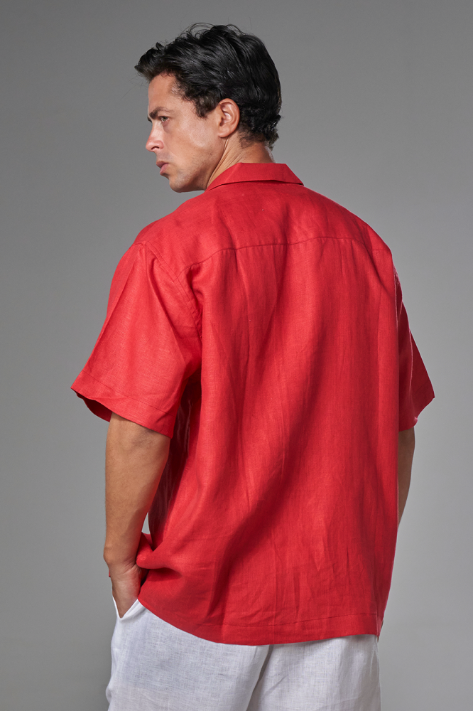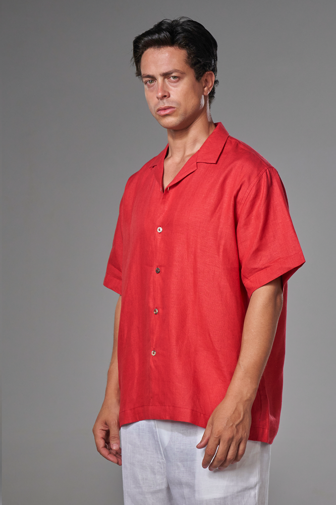 • قميص كتان نص كم