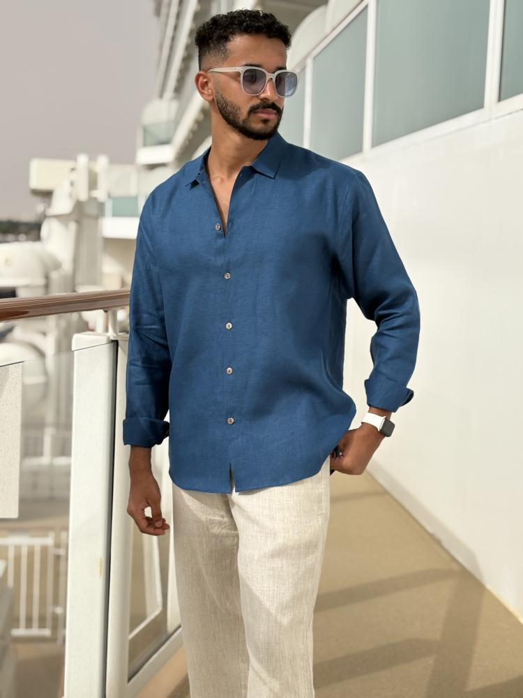 لون أزرق كلاسيكي أنيق وقماش ديلمير الفاخر.