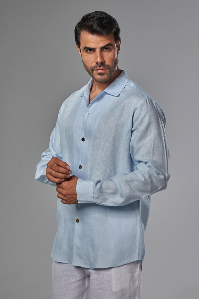 هدوء البيبي بلو يلتقي بفخامة الكتان الطبيعي وخيوطنا الأوروبية الخاصة.