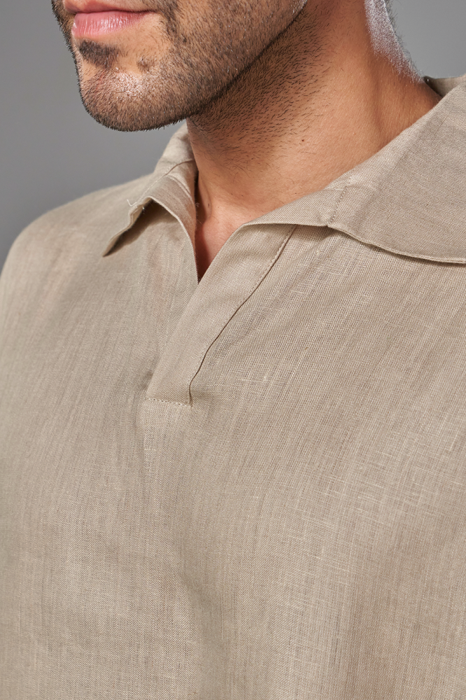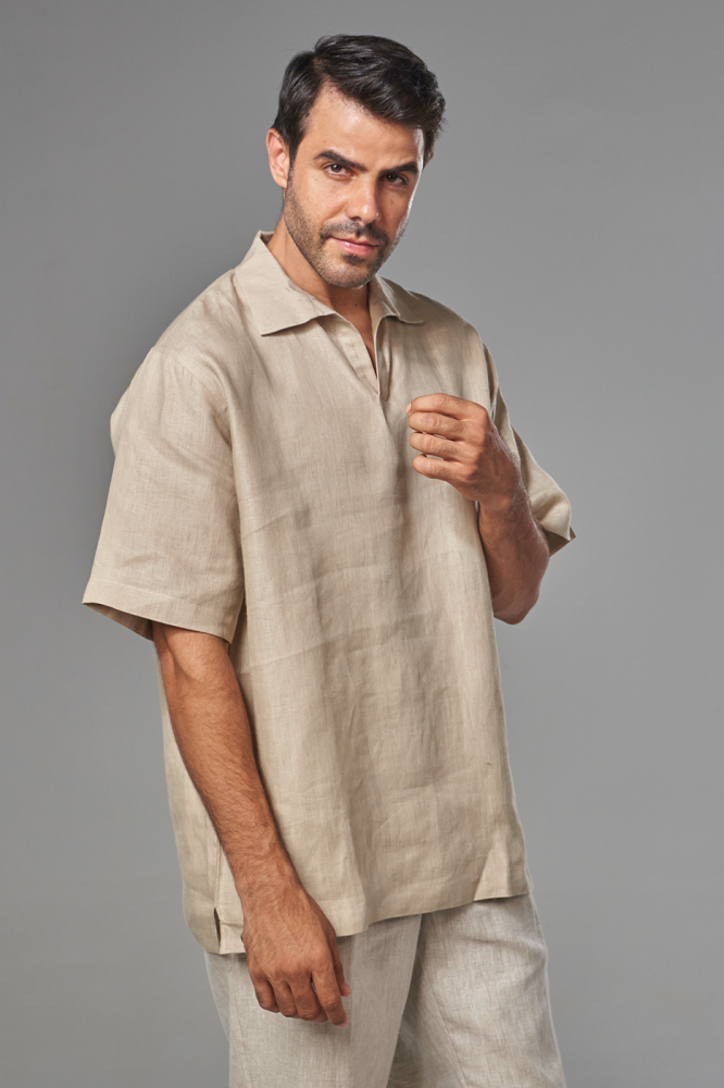 ارتقِ بإطلالتك اليومية مع بولو بتصميم فريد وغير تقليدي. مصنوع من قماش كتان طبيعي 100%، يتميّز بخفة ونعومة مثالية لأجواء الصيف، مع قصّة أوفر سايز تمنحك الراحة والستايل في آنٍ واحد.