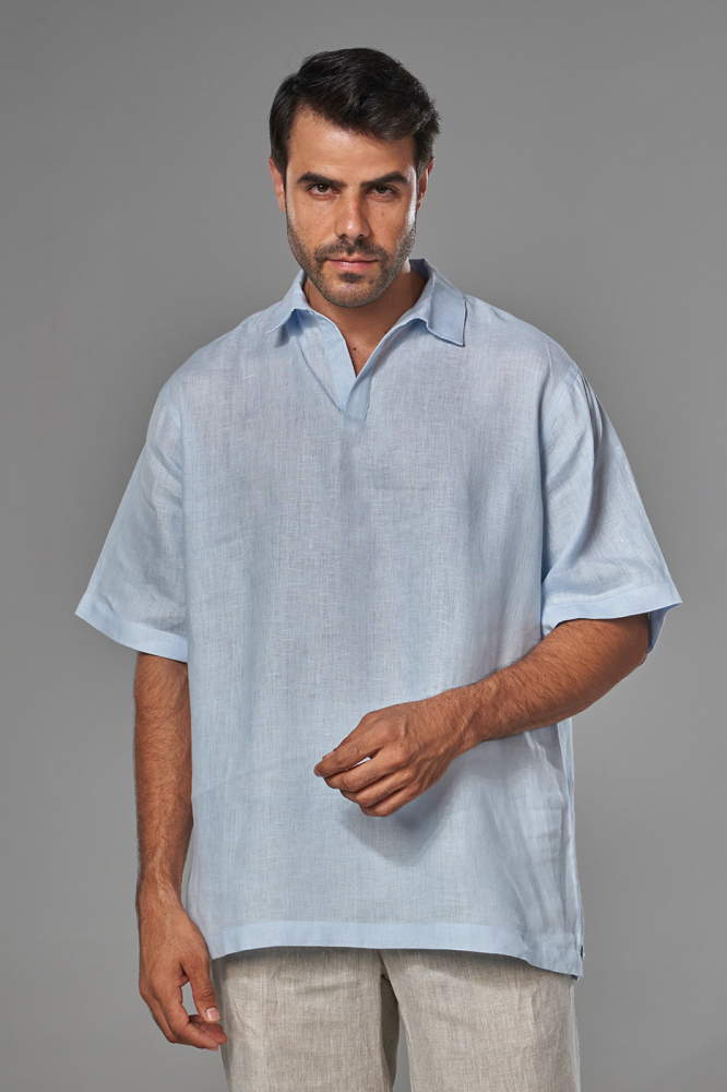 ارتقِ بإطلالتك اليومية مع بولو بتصميم فريد وغير تقليدي. مصنوع من قماش كتان طبيعي 100%، يتميّز بخفة ونعومة مثالية لأجواء الصيف، مع قصّة أوفر سايز تمنحك الراحة والستايل في آنٍ واحد.
